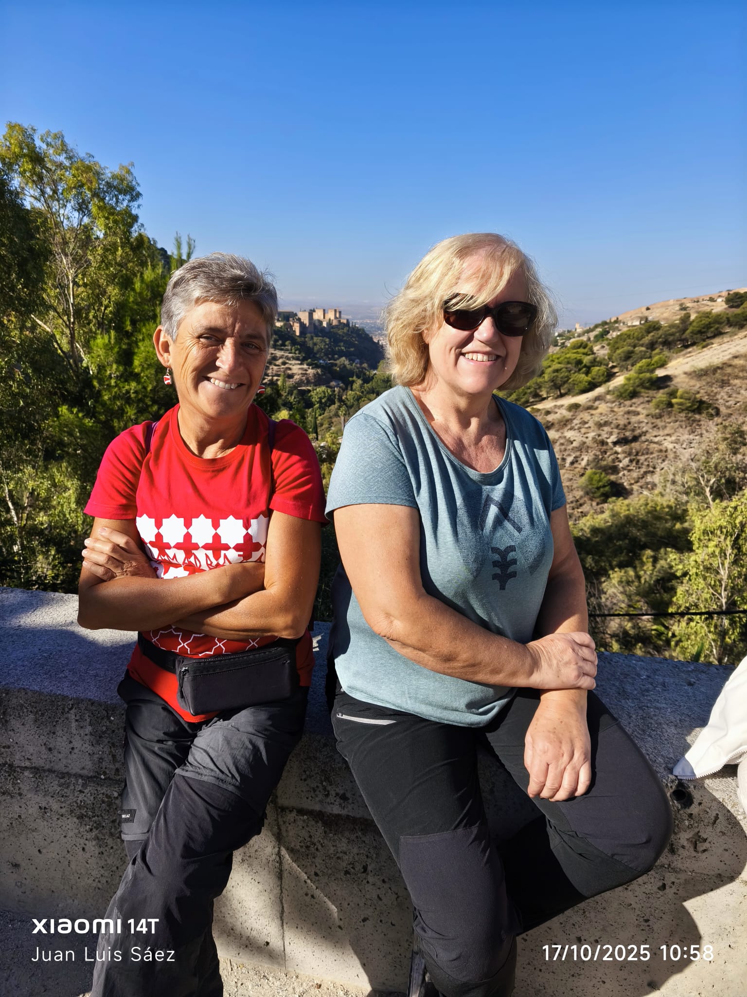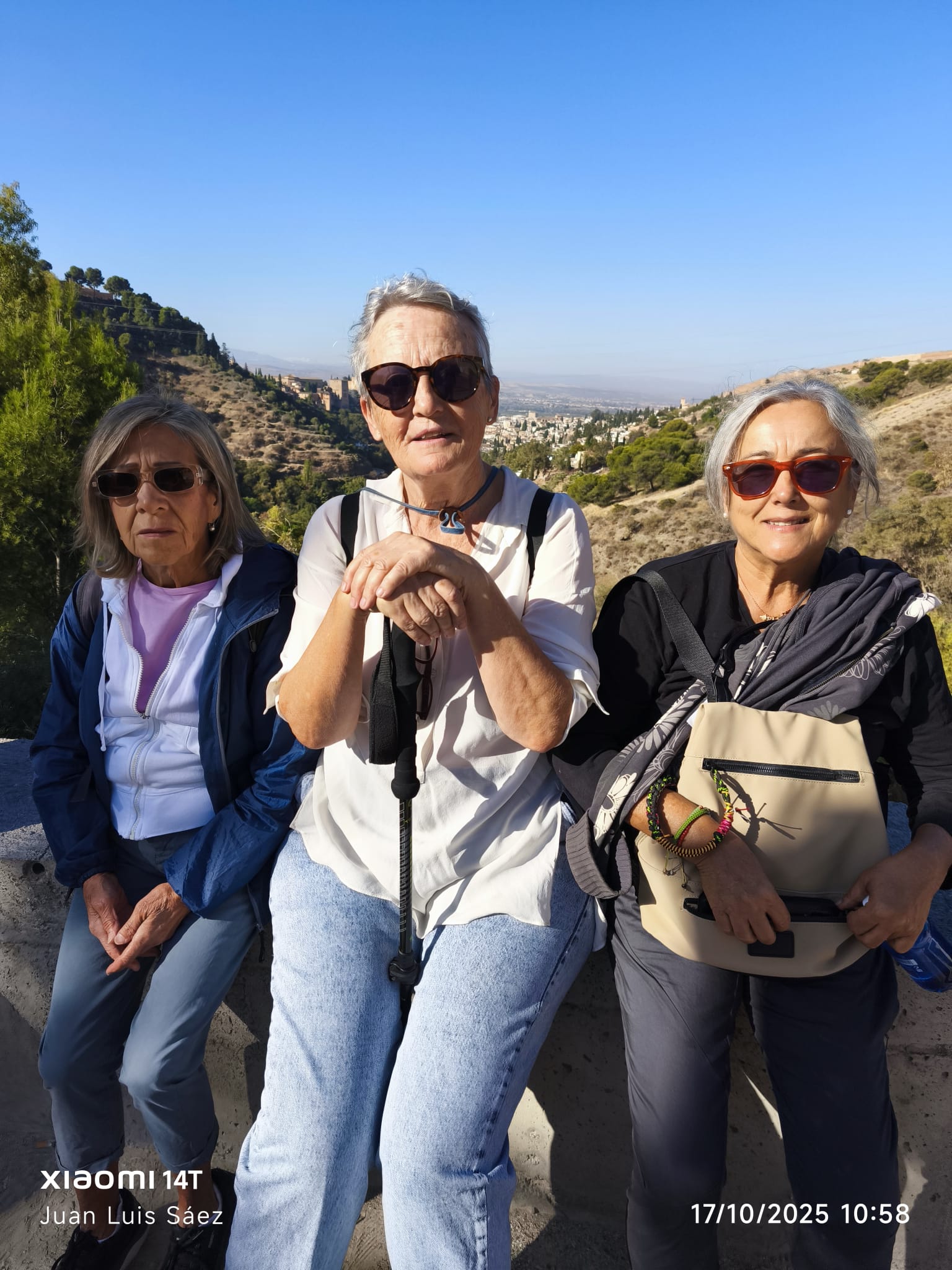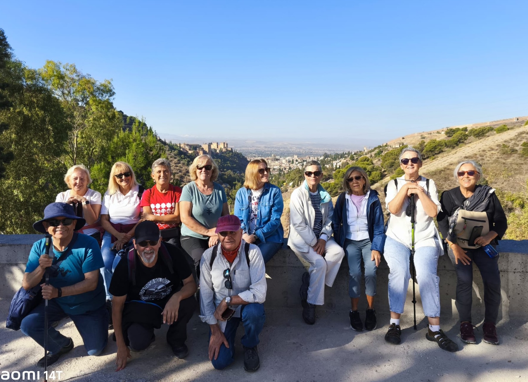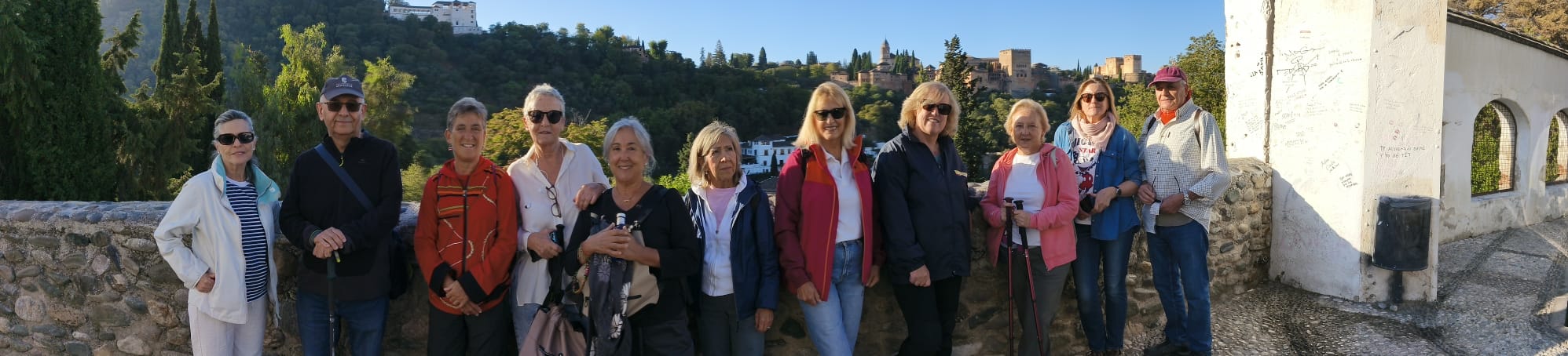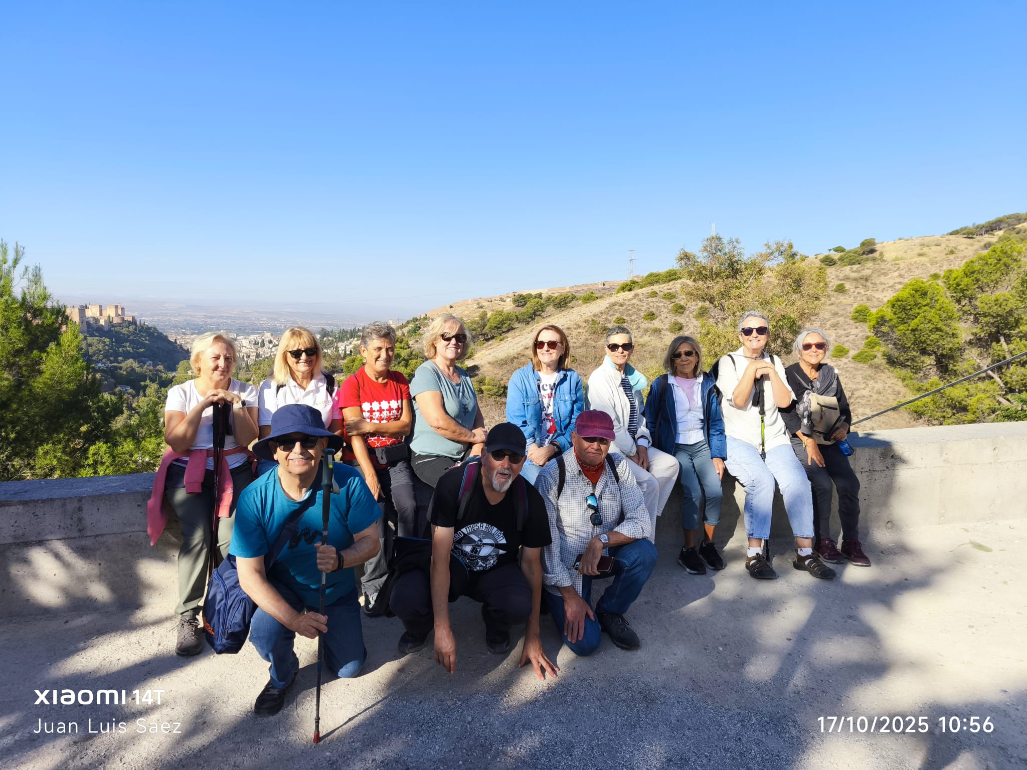 A las 9:30, con el aire fresco de octubre y el sol asomando sobre la Alhambra, doce senderistas iniciamos camino desde Plaza Nueva: Julia, Pepe, Antonio, Encarni, Elena, Inma V., Francisca, María Elena, Inma C., María Amor y Juan Luis. El ambiente era ligero, de esos días en que caminar se siente natural.