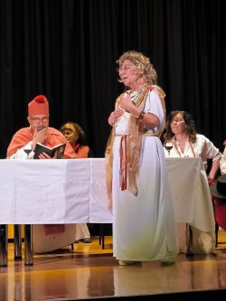 Bajo la dirección exquisita y meticulosa de la profesora Orencia Moreno Correa, el grupo ofreció una verdadera lección de teatro. Aunque sus integrantes forman parte del alumnado sénior del APFA, lo cierto es que, al verlos sobre el escenario, nadie pensaría que se trata de actores aficionados. Cada gesto, cada palabra y cada mirada estuvo impregnada de una pasión que solo quienes han acumulado experiencias, vivencias y una inagotable curiosidad por aprender pueden transmitir con esa autenticidad. Su entrega emocionó al público de tal manera que la representación se hizo breve, dejó ganas de más y concluyó con un prolongado aplauso. Muchos asistentes abandonaron la Sala Máxima todavía comentando, admirados, la calidad interpretativa y la fuerza expresiva de cada escena.