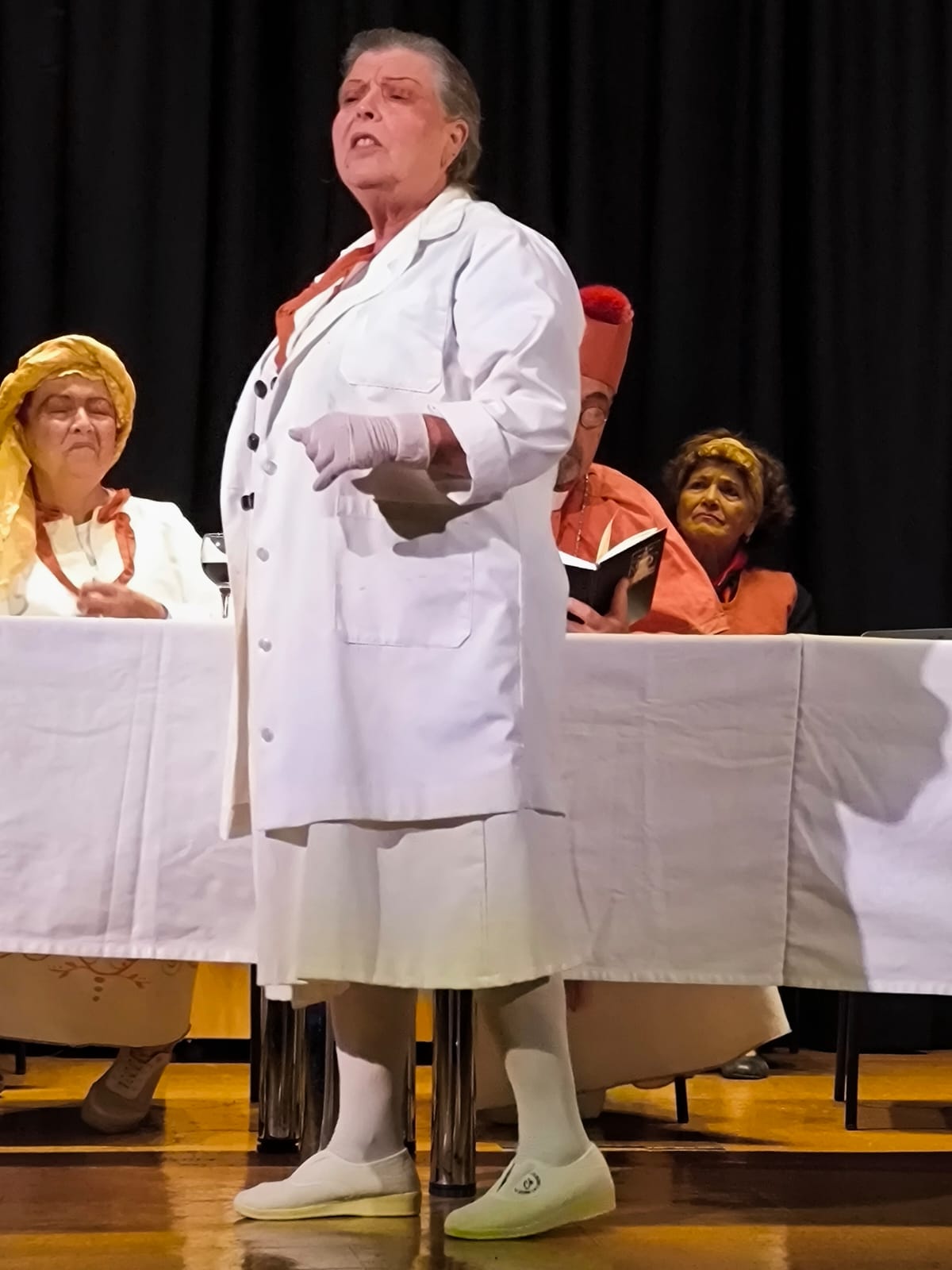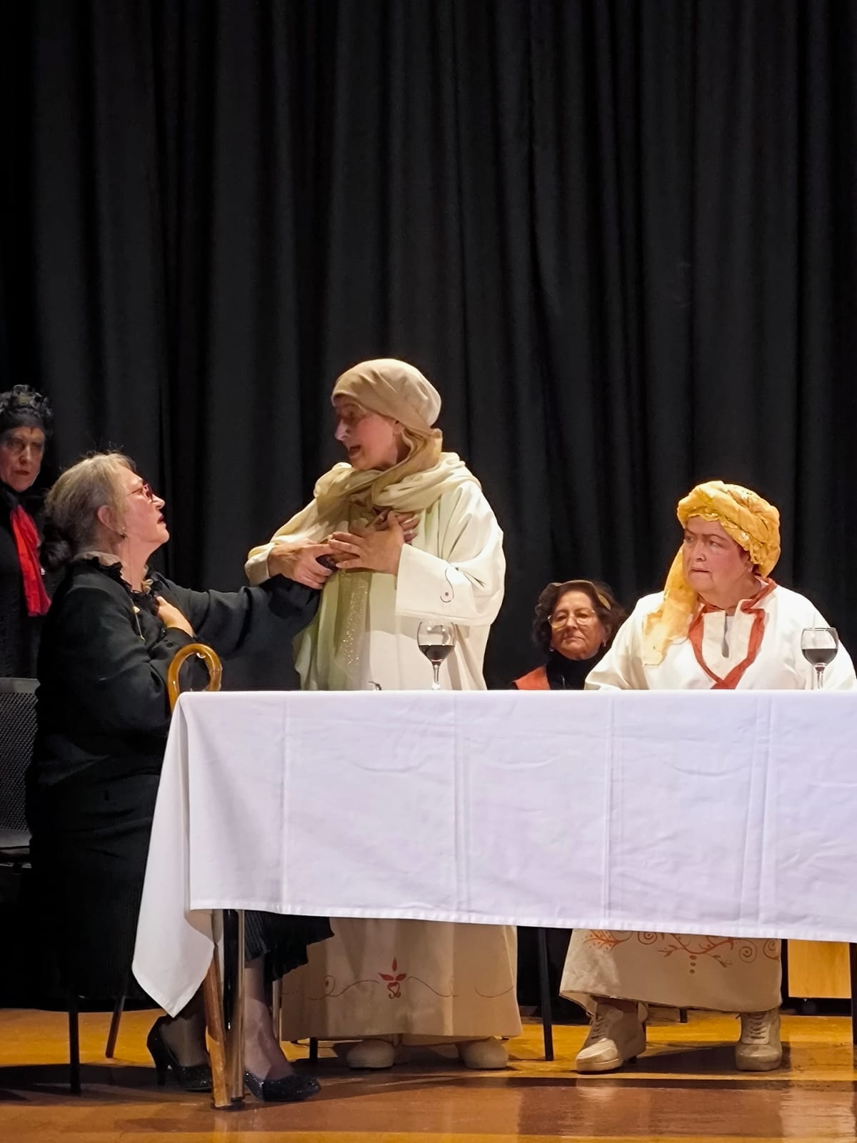 Bajo la dirección exquisita y meticulosa de la profesora Orencia Moreno Correa, el grupo ofreció una verdadera lección de teatro. Aunque sus integrantes forman parte del alumnado sénior del APFA, lo cierto es que, al verlos sobre el escenario, nadie pensaría que se trata de actores aficionados. Cada gesto, cada palabra y cada mirada estuvo impregnada de una pasión que solo quienes han acumulado experiencias, vivencias y una inagotable curiosidad por aprender pueden transmitir con esa autenticidad. Su entrega emocionó al público de tal manera que la representación se hizo breve, dejó ganas de más y concluyó con un prolongado aplauso. Muchos asistentes abandonaron la Sala Máxima todavía comentando, admirados, la calidad interpretativa y la fuerza expresiva de cada escena.