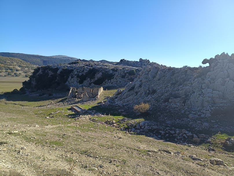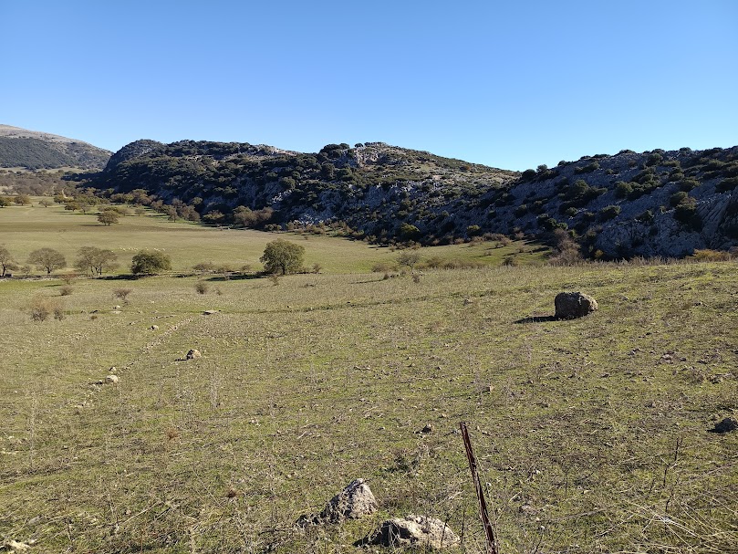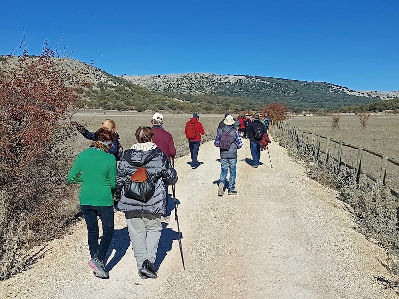 Desde allí ya empezamos a hacer nuestra ruta, había que subir una pendiente para coronar un pequeño montículo y desde allí ya se divisaba la zona que íbamos a recorrer. Transcurre por una llanura de forma alargada, atravesada por un pequeño arroyo estacional llamado Bailón. La vegetación arbórea está dominada por encinas, quejigos, arces, majuelos y cornicabras, algunas de tamaño fuera de lo común, que suelen situarse en la periferia del “poljé”, el tramo de transición entre la meseta llana y el terreno más inclinado.