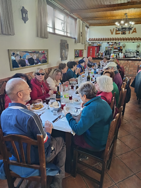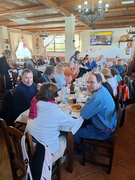 Hicimos el camino de ida y vuelta y Paco Valle nos explicó todo lo que pudo explicarnos durante este recorrido. A la vuelta ya al restaurante con ganas de almorzar, fue un almuerzo muy agradable y distendido y sobre todo la sensación de todos los que componíamos el grupo, que el menú muy bueno, el servicio magnífico y la amabilidad y profesionalidad de todo el personal. Desde aquí queremos agradecer a Aurora y Andrés, responsables del restaurante, por parte de todos los compañeros el buen trato recibido, la buena comida, etc…