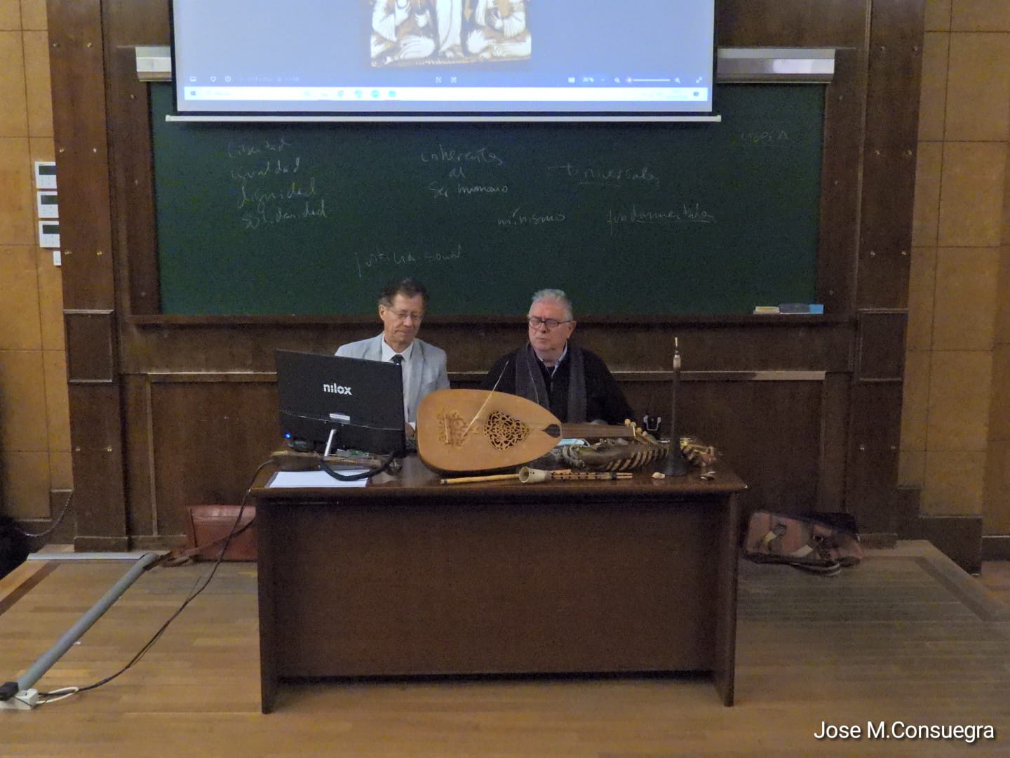 El tiempo se hizo corto para los oyentes, que siguieron con evidente interés una exposición tan erudita como amena. La conferencia concluyó con la proyección de diversos ejemplos musicales actuales del Magreb, junto a verdiales malagueños, corraleras de Lebrija y zambras, evidenciando la vigencia de ese legado sonoro en distintas tradiciones contemporáneas.