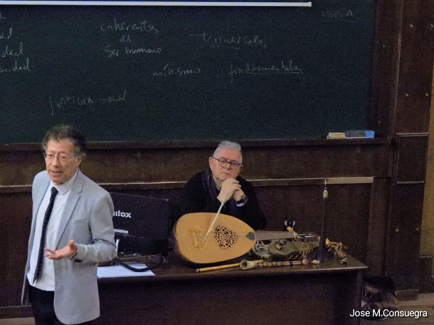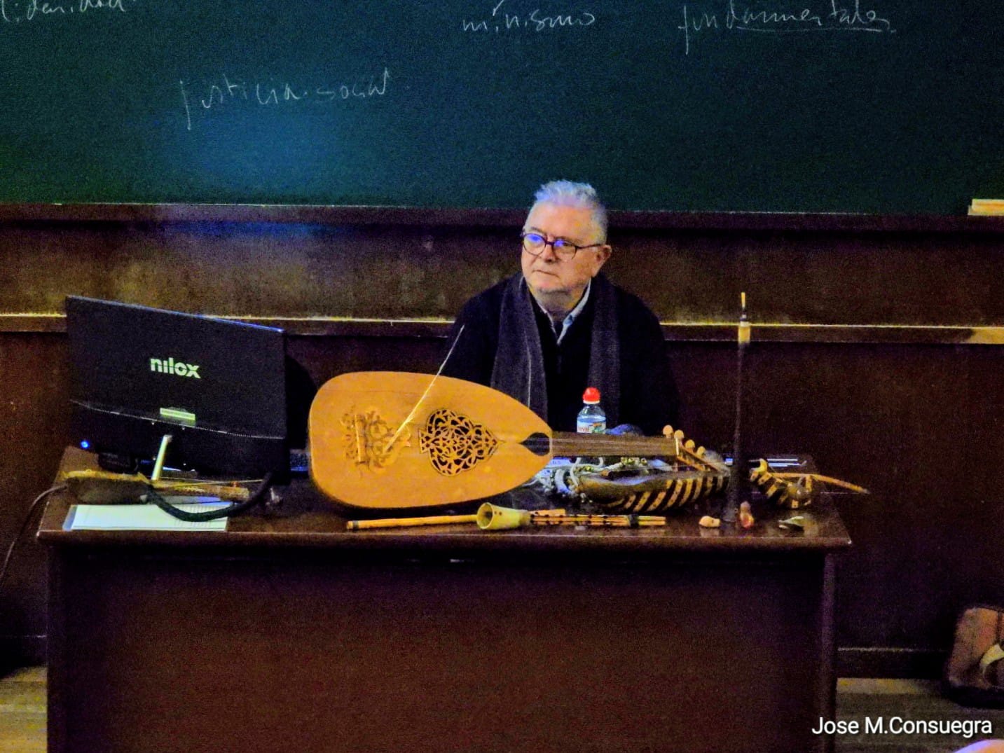 Uno de los ejes centrales de la conferencia fue el análisis del diálogo —y progresivo distanciamiento— entre la cultura musical hispano-musulmana y la castellano-cristiana. En ese contexto, el conferenciante abordó las formas musicales propiamente andalusíes, como las muwassahas, y explicó cómo la música del Reino de Granada fue heredada y transformada en el mundo morisco, en un complejo proceso de continuidad y cambio.