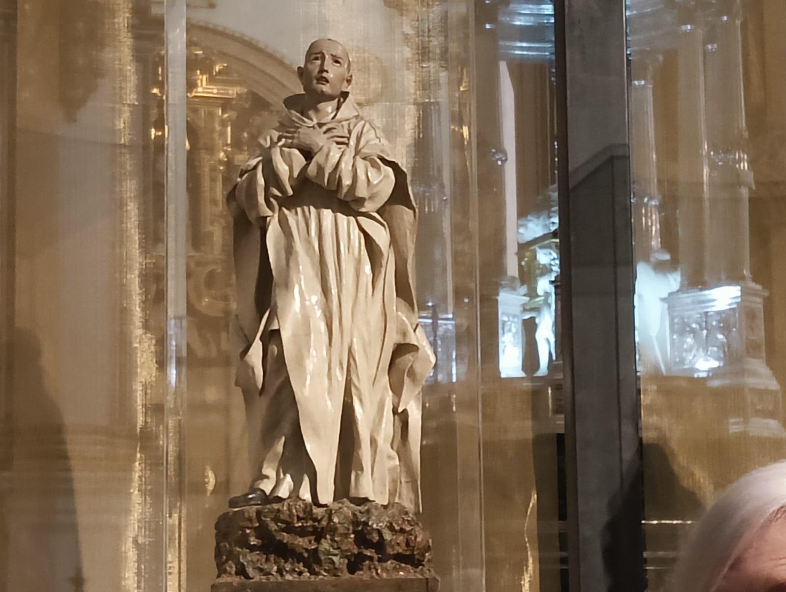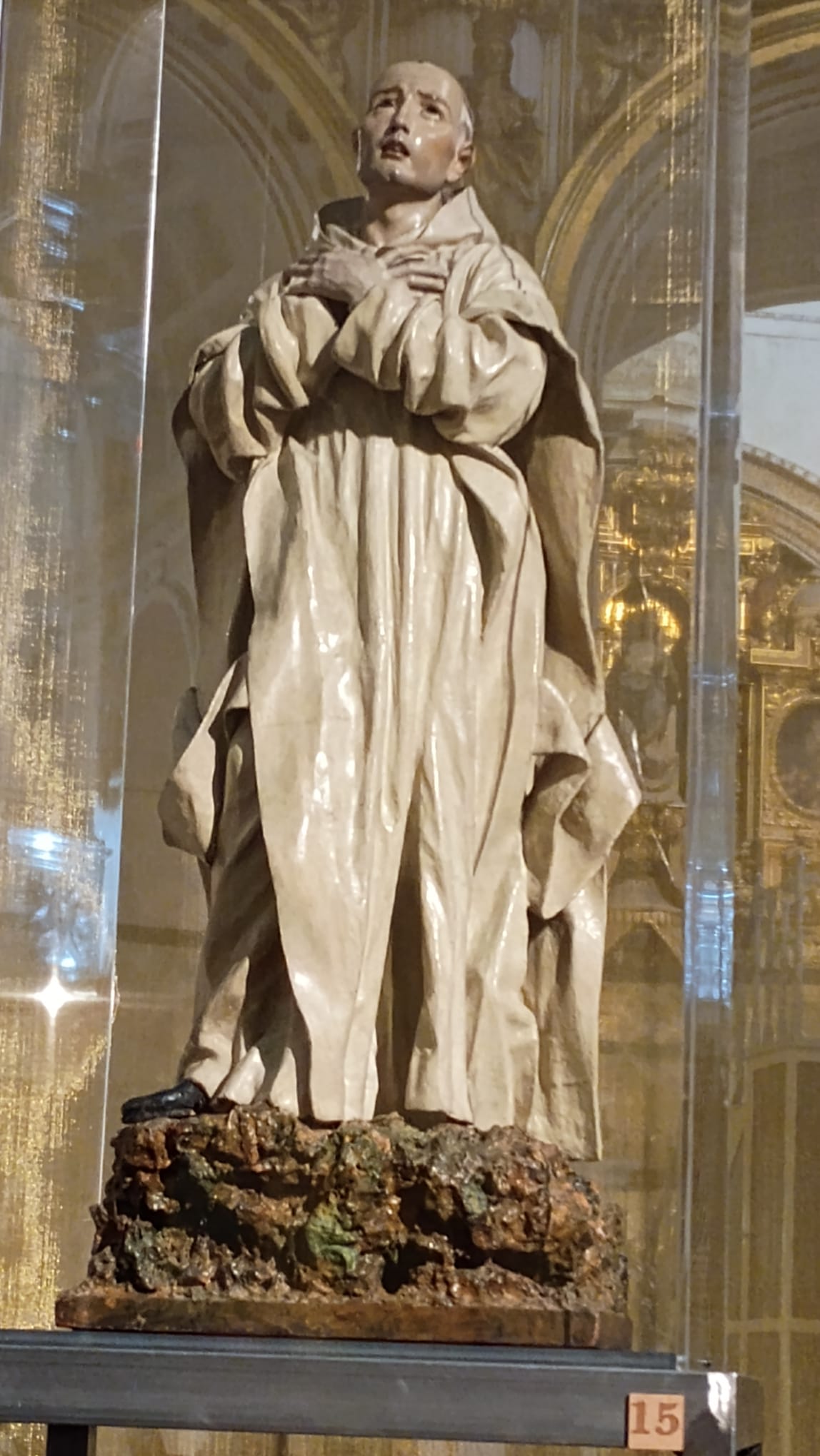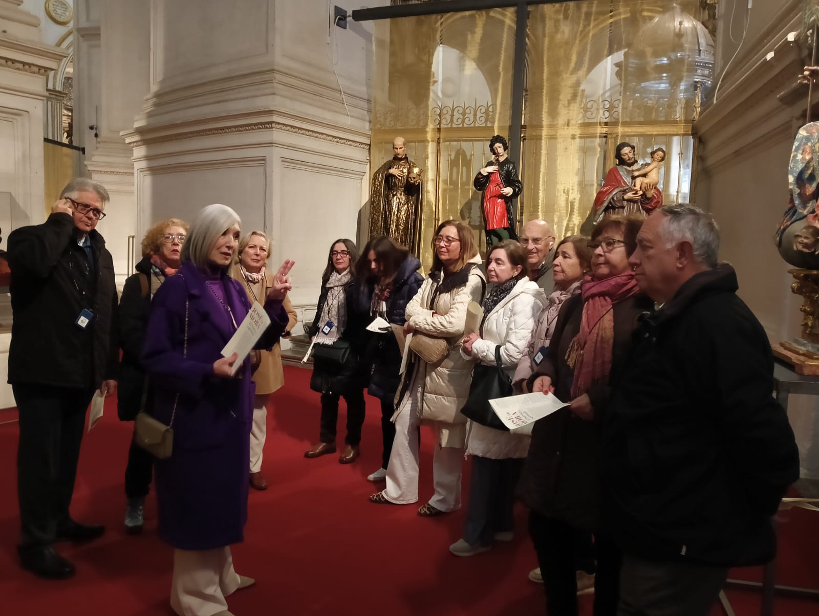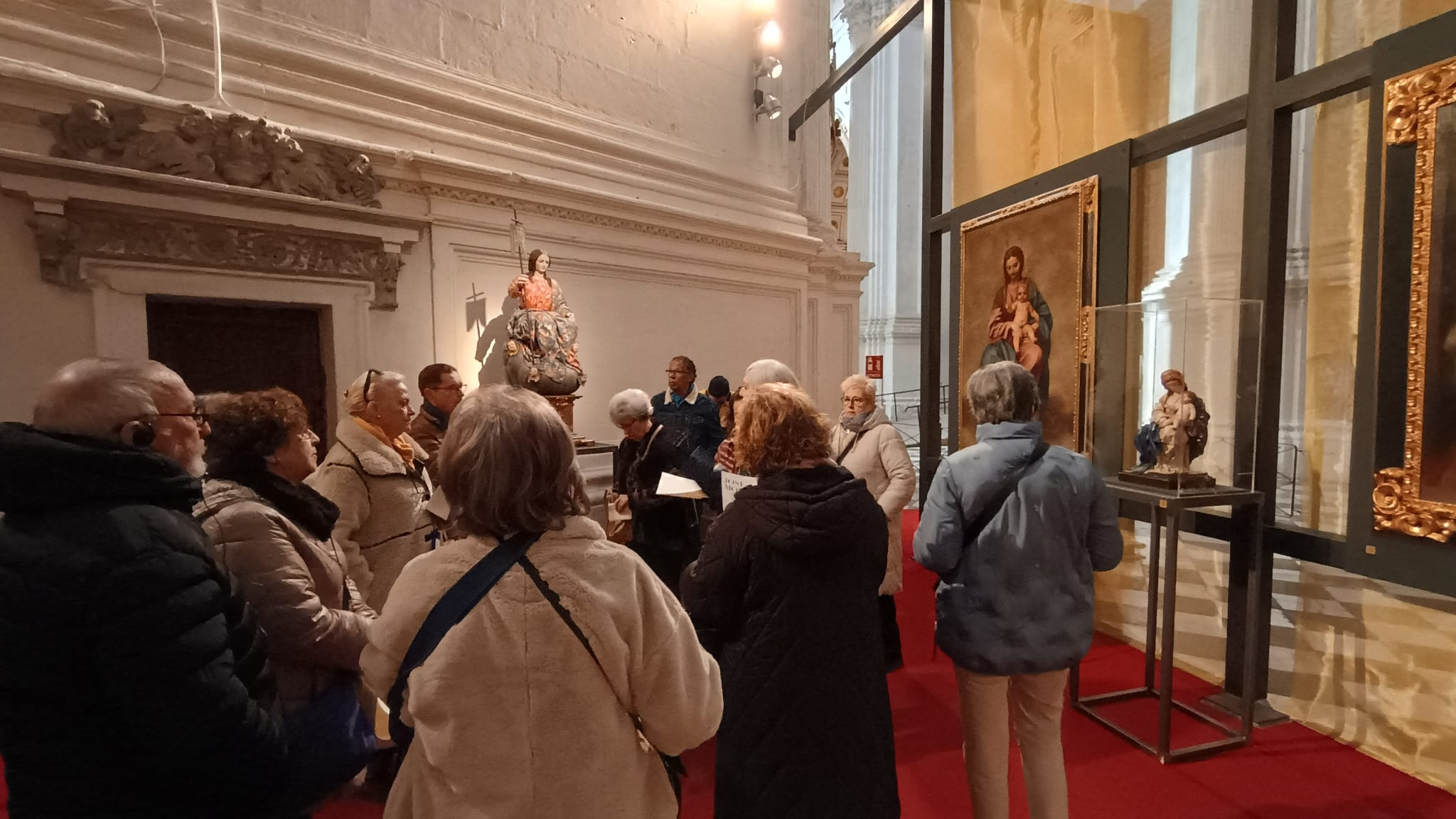 Muy detenidamente, a pesar del mucho frío que sentíamos, admiramos cada una de las esculturas y pinturas, profundizando en los detalles que hacen inigualables las obras de José de Mora o Alonso Cano, aprendiendo a diferenciarlas de las de sus respectivas escuelas. 54 obras, que se quedarán para siempre en nuestra memoria , entre las que destacaría, a modo personal pues todas son magníficas e impresionantes, el Cristo del Silencio ( Stmo. Cristo de la Misericordia), Santa Teresa, Jesús de la Sentencia y la pequeña escultura de San Bruno ( San Brunillo) de José de Mora, y la Inmaculada de Alonso Cano , expuesta en la Sacristía Mayor .