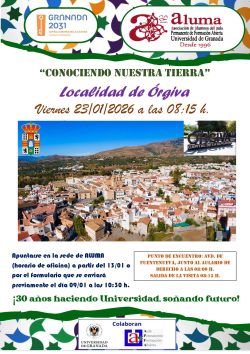 Dentro del programa «Conociendo nuestra tierra», hemos visitado la localidad alpujarreña de Órgiva, actividad organizada por ALUMA: (Asociación de Alumnos Mayores de la Universidad de Granada).
