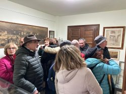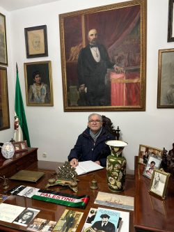 Entramos en una sala amplia, según nos dice, la inauguramos nosotros. Sala, donde hay expuestos diferentes cuadros de gran formato, de pintores locales y sobre todo de su hija Paloma, -excepcional pintora, fue nuestra profesora en el APFA-. Alguna escultura en forja, la corona de Boabdil…