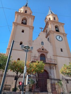 Edificada sobre una antigua mezquita. Se reconstruyó en 1580. En el Camarín del Altar Mayor se encuentra el Santísimo Cristo de la Expiración. Se le atribuye a la escuela de Montañez, aunque tallada en Granada. La iglesia, la vimos solo por fuera. La guía nos va explicando características y curiosidades de esta iglesia. Sus dos torres gemelas, el reloj: durante un tiempo las campanas no daban los cuartos. Compraron el reloj a una familia de empresarios valencianos. El ayuntamiento solo paga una parte, pero, no paga la totalidad. Por eso, durante un tiempo, el reloj daba las horas pero, no los cuartos… Es un pueblo donde en la Fiesta se emplea mucha pólvora, sobre todo cuando se baja al Santo Cristo del Camarín y la gente se emociona llorando a lágrima viva.