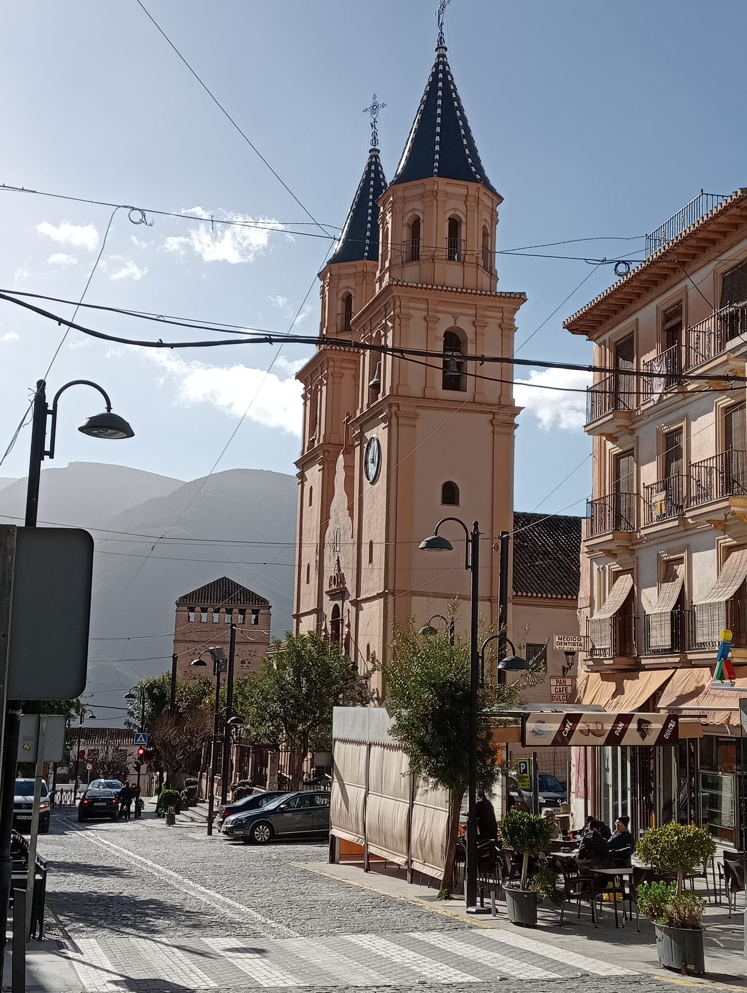 Edificada sobre una antigua mezquita. Se reconstruyó en 1580. En el Camarín del Altar Mayor se encuentra el Santísimo Cristo de la Expiración. Se le atribuye a la escuela de Montañez, aunque tallada en Granada. La iglesia, la vimos solo por fuera. La guía nos va explicando características y curiosidades de esta iglesia. Sus dos torres gemelas, el reloj: durante un tiempo las campanas no daban los cuartos. Compraron el reloj a una familia de empresarios valencianos. El ayuntamiento solo paga una parte, pero, no paga la totalidad. Por eso, durante un tiempo, el reloj daba las horas pero, no los cuartos… Es un pueblo donde en la Fiesta se emplea mucha pólvora, sobre todo cuando se baja al Santo Cristo del Camarín y la gente se emociona llorando a lágrima viva.