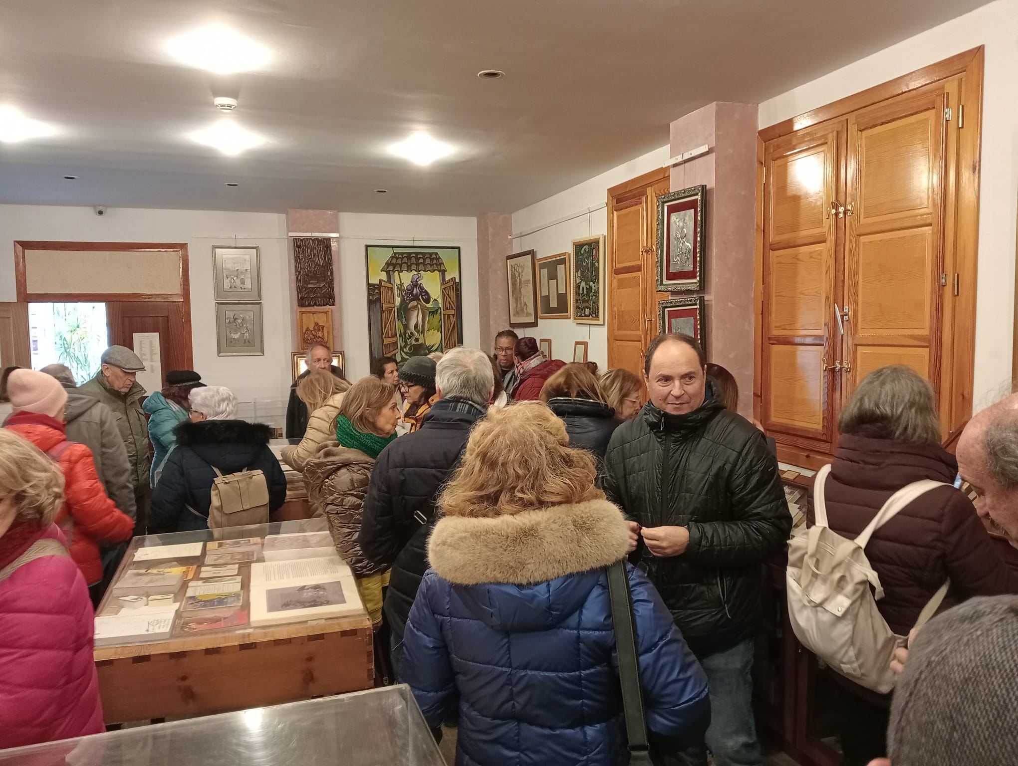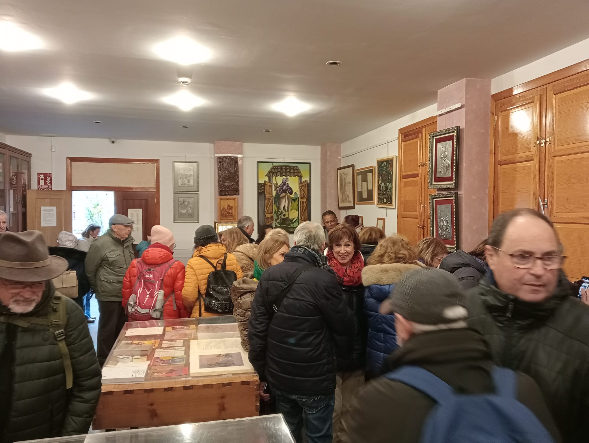 Entramos en una sala amplia, según nos dice, la inauguramos nosotros. Sala, donde hay expuestos diferentes cuadros de gran formato, de pintores locales y sobre todo de su hija Paloma, -excepcional pintora, fue nuestra profesora en el APFA-. Alguna escultura en forja, la corona de Boabdil…