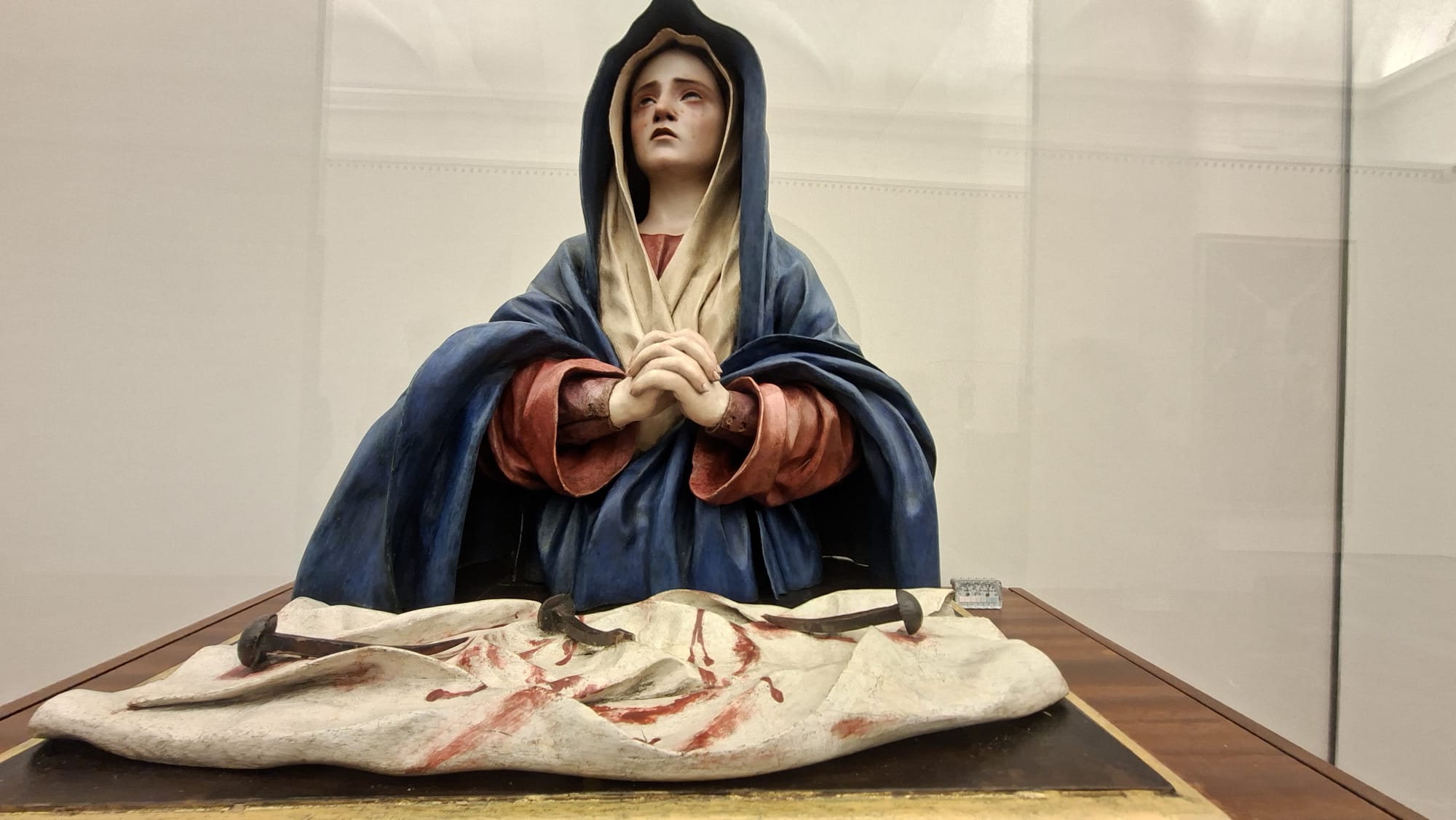 La temática casi exclusivamente religiosa de la mayoría de las obras. Esto se debe a que muchas de las obras expuestas fueron recuperadas de los conventos y monasterios que quedaron en manos del Estado tras la desamortización de Mendizábal, en 1836.