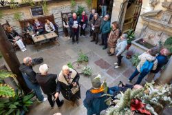 Nos hemos acercado a la puerta de La Real Chancillería, donde se celebró el juicio a Mariana y donde ejercía su cargo de Alcalde del Crimen Ramón Pedrosa, que envió al patíbulo a Mariana y un centenar largo de granadinos en los seis años que permaneció en la ciudad. Aquí de nuevo ha tenido lugar la pertinente escucha musical y lectura dramatizada de textos.