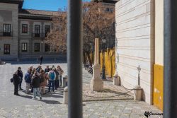 Callejeamos un poco hasta llegar a la calle Cárcel Baja, Puerta del Perdón de la Catedral, frente a ella se encontraba la Cárcel Baja de Granada. Hasta allí fue trasladada Mariana tras el juicio y la sentencia de muerte. Permaneció dos días en capilla hasta el día del ajusticiamiento. De nuevo los compañeros-as dan lectura emocionada al testamento de Mariana dirigido a su hijo José María.